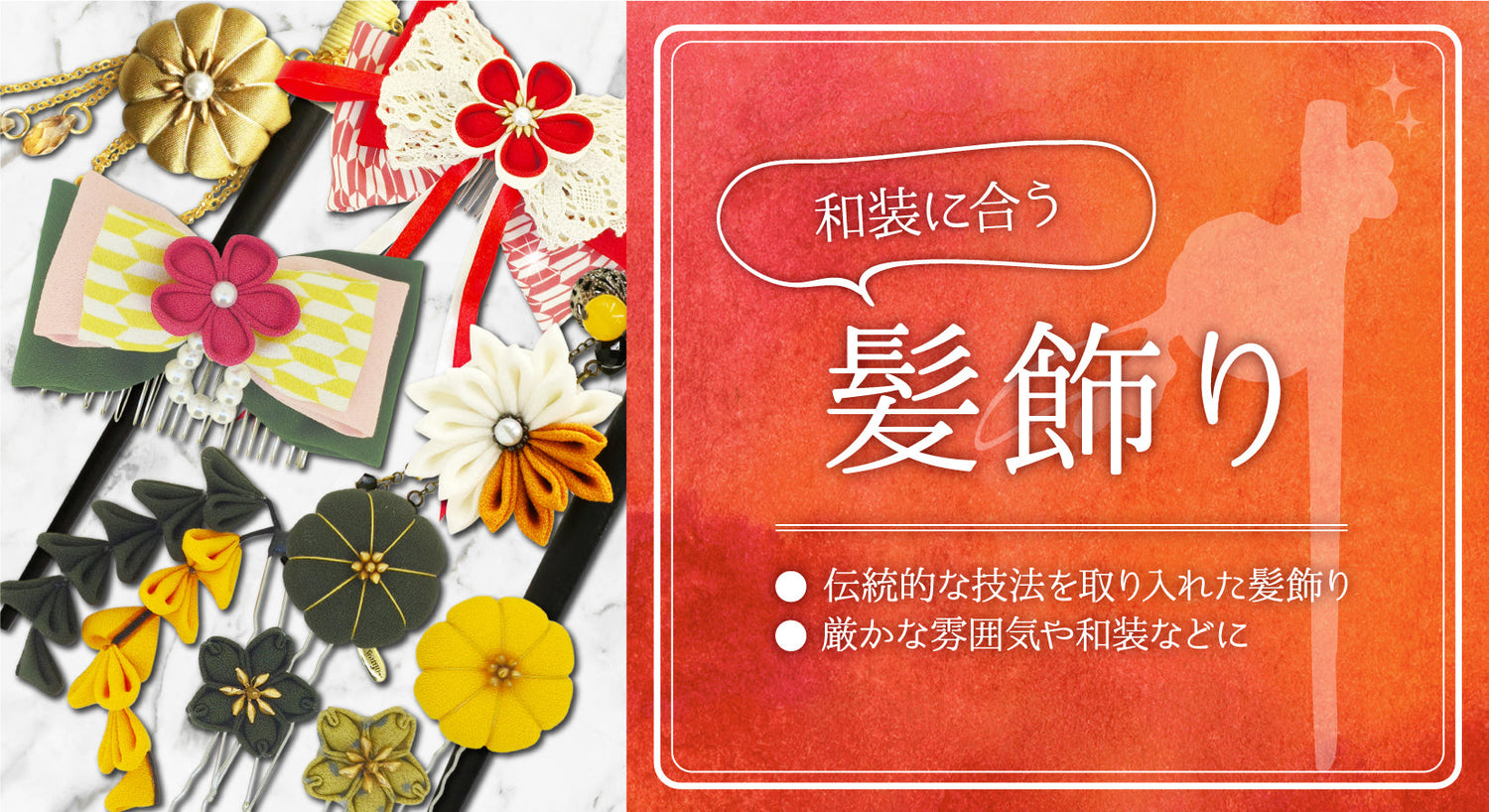 普段着や浴衣などにカジュアルにお使いいただけるオリジナルの簪・作家コラボ作品から、留袖や振袖、七五三など着物に合う伝統の鼈甲(べっ甲)簪、花簪、つまみかんざしなどの手作りかんざしを販売しています。ヘアゴムなどのヘアアクセサリーやグッズも取り揃えています。