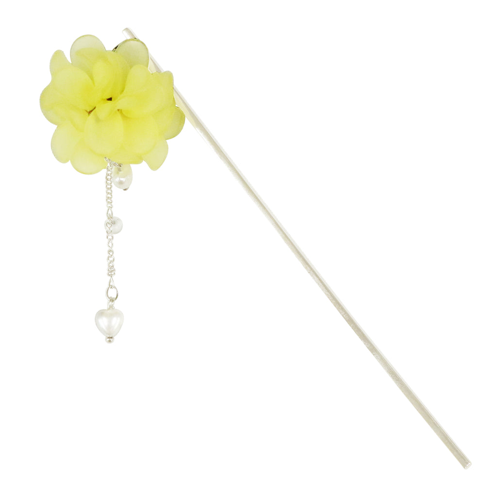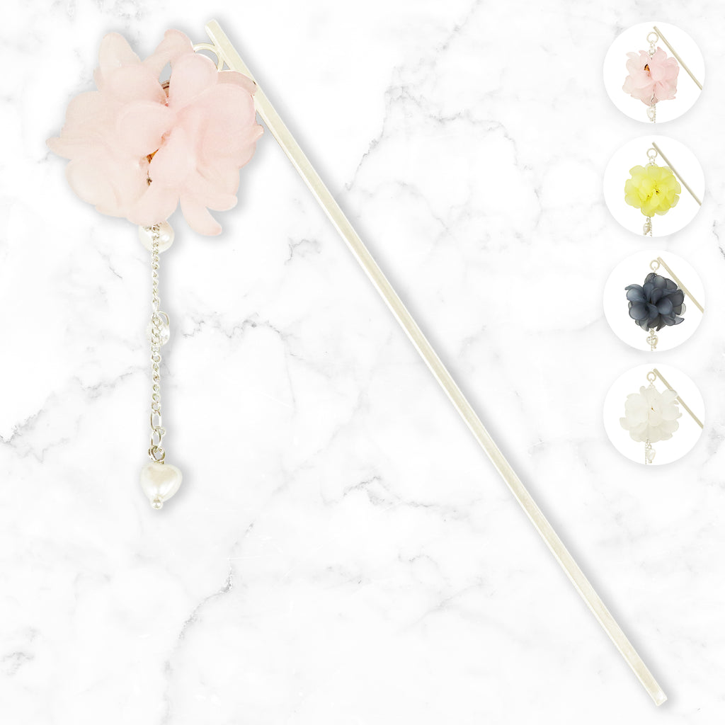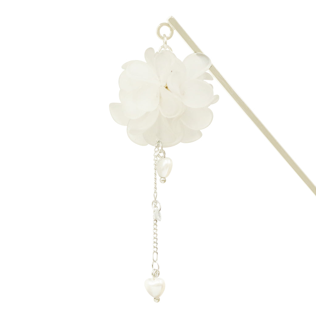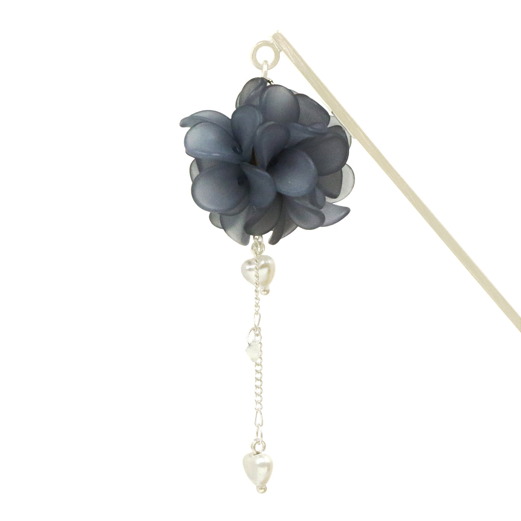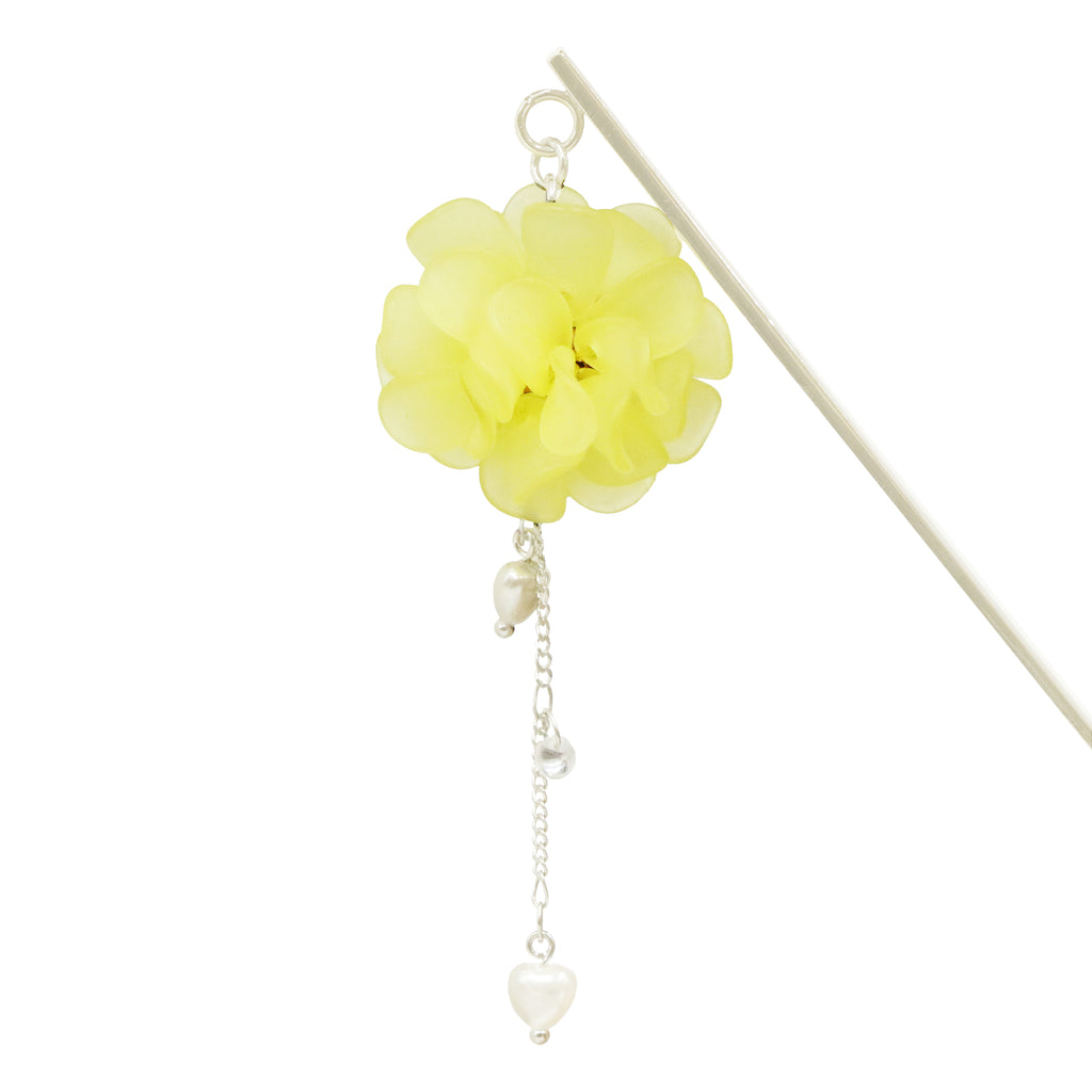 すりガラスのような花びらを鞠の様に仕上げた一本簪です。