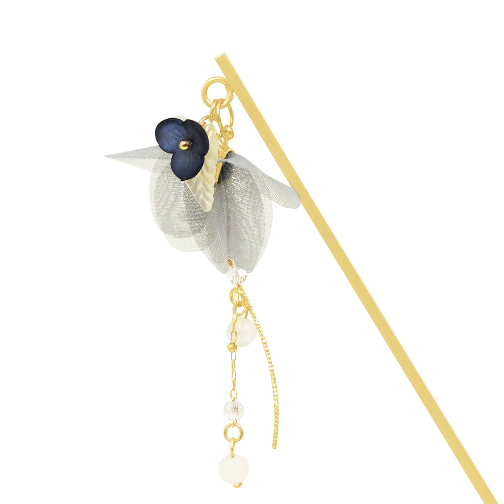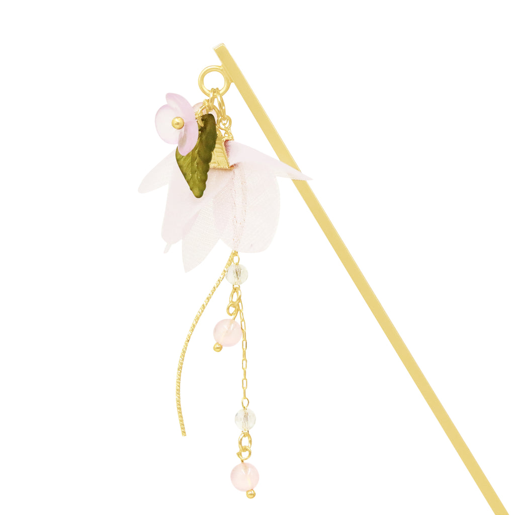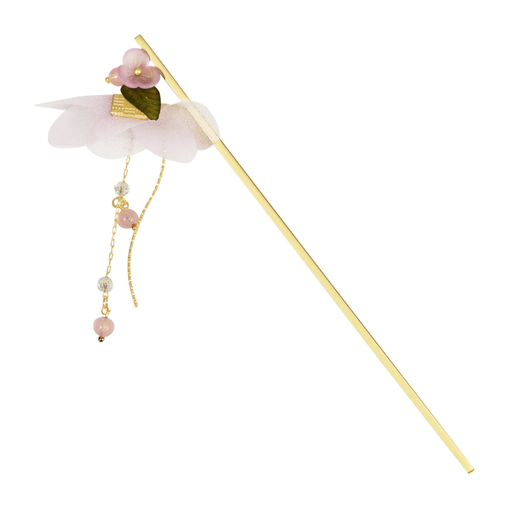 揺れるたびチェーンとビーズパーツに動きが出る、春らしい簪に仕上げています。
