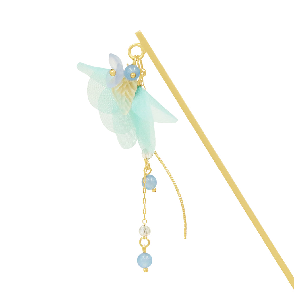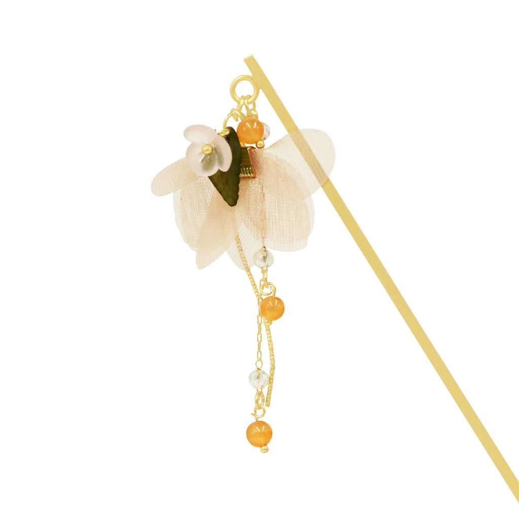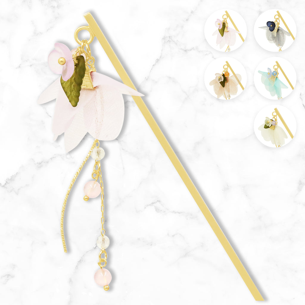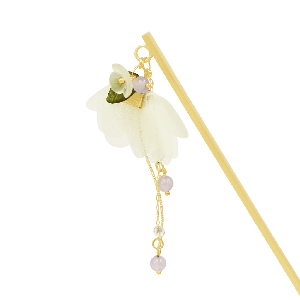 揺れるたびチェーンとビーズパーツに動きが出る、春らしい簪に仕上げています。