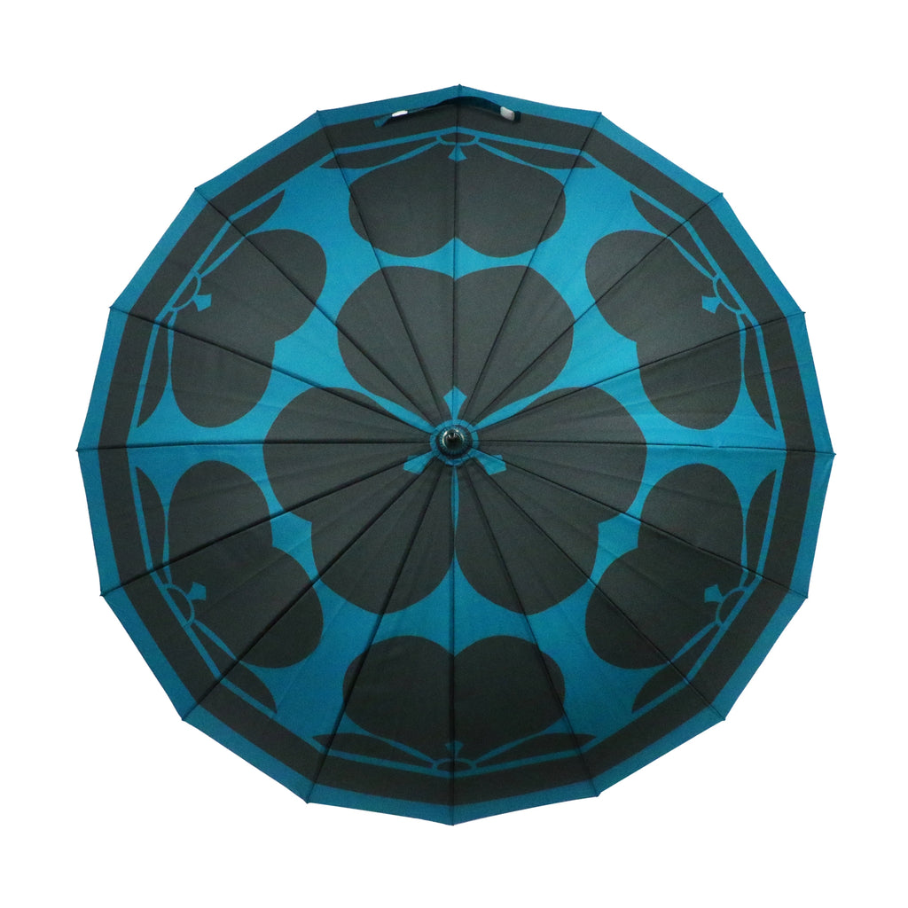 数多くある家紋の中から『七つ酢漿草』を天然竹16本長傘に落とし込みました。深藍色が映える色味に仕上げました。