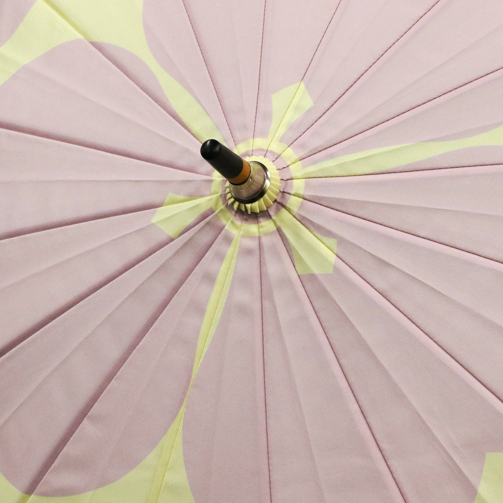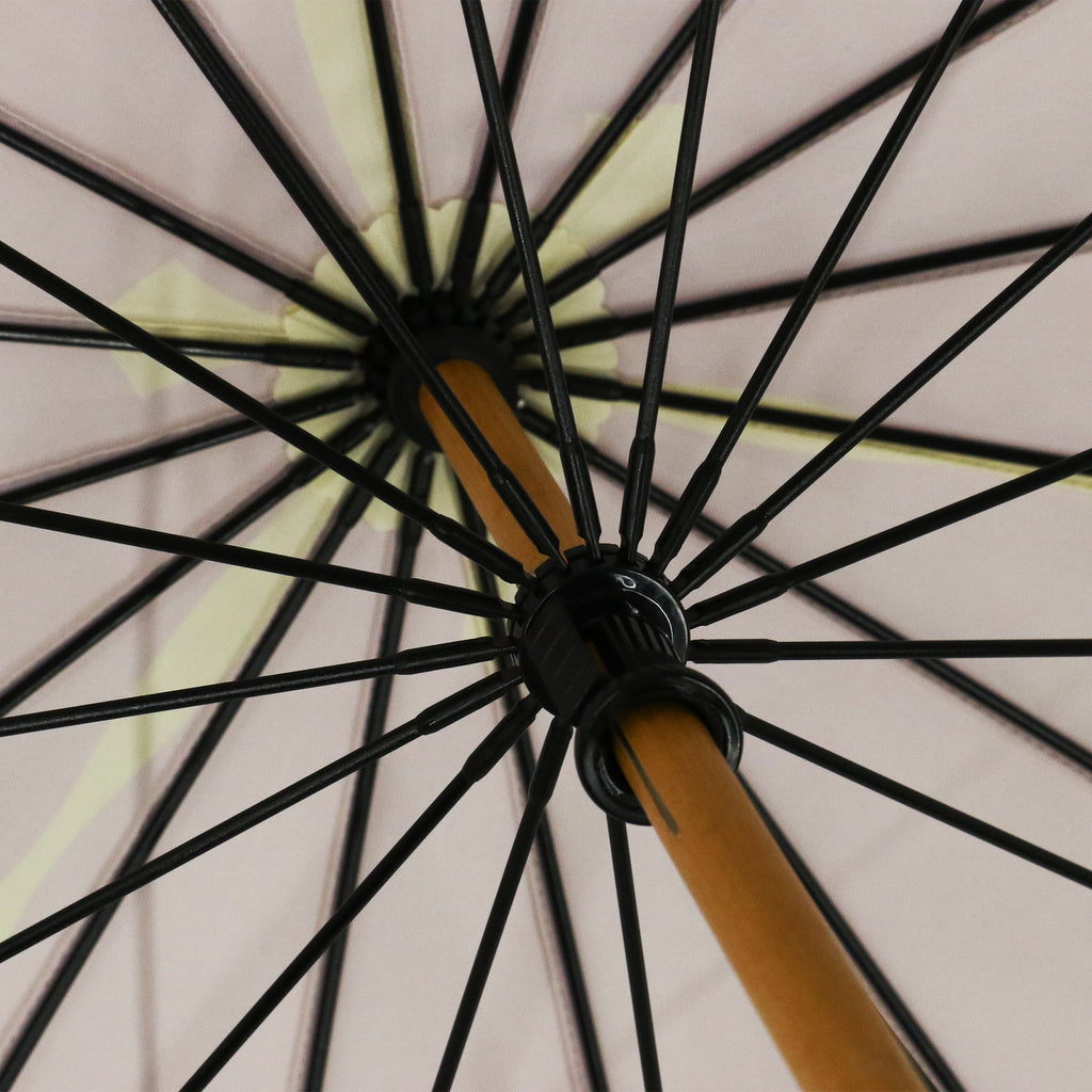 数多くある家紋の中から『七つ酢漿草』を天然竹16本長傘に落とし込みました。可愛らしい優しい色味に仕上げています。