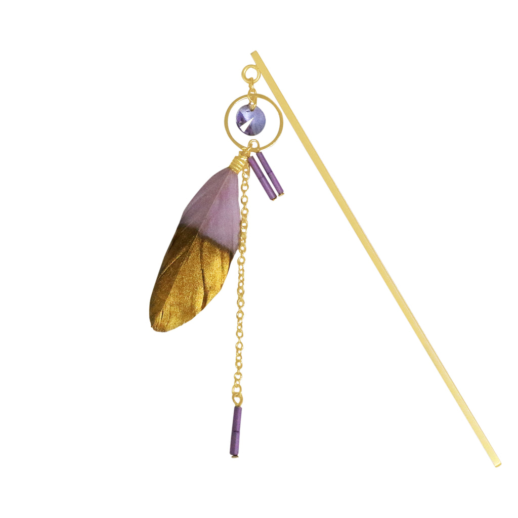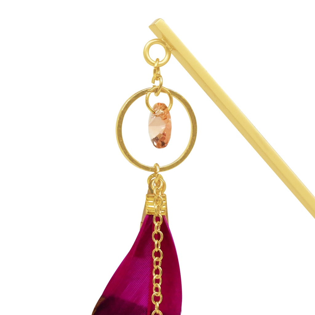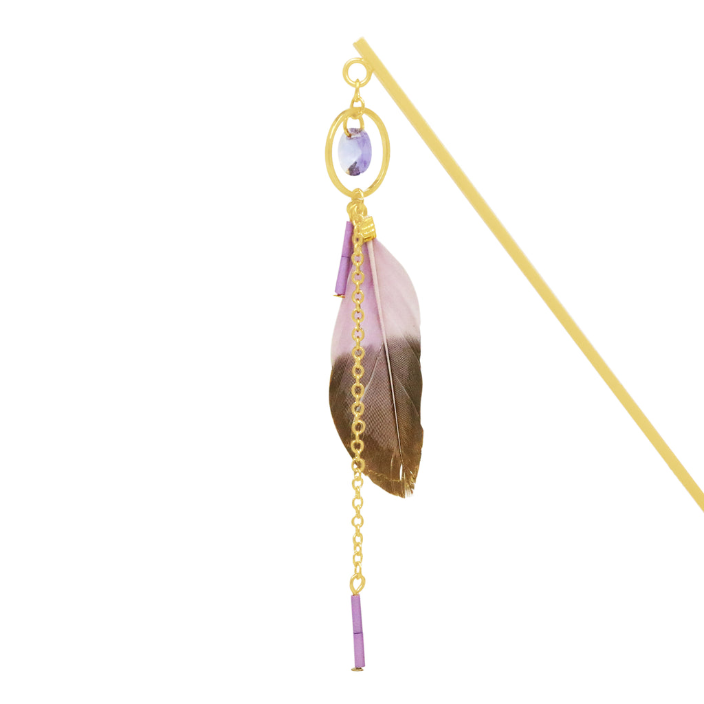 キラキラと輝くビーズと組み合わせ、存在感はありながらも軽くつけやすい簪です。