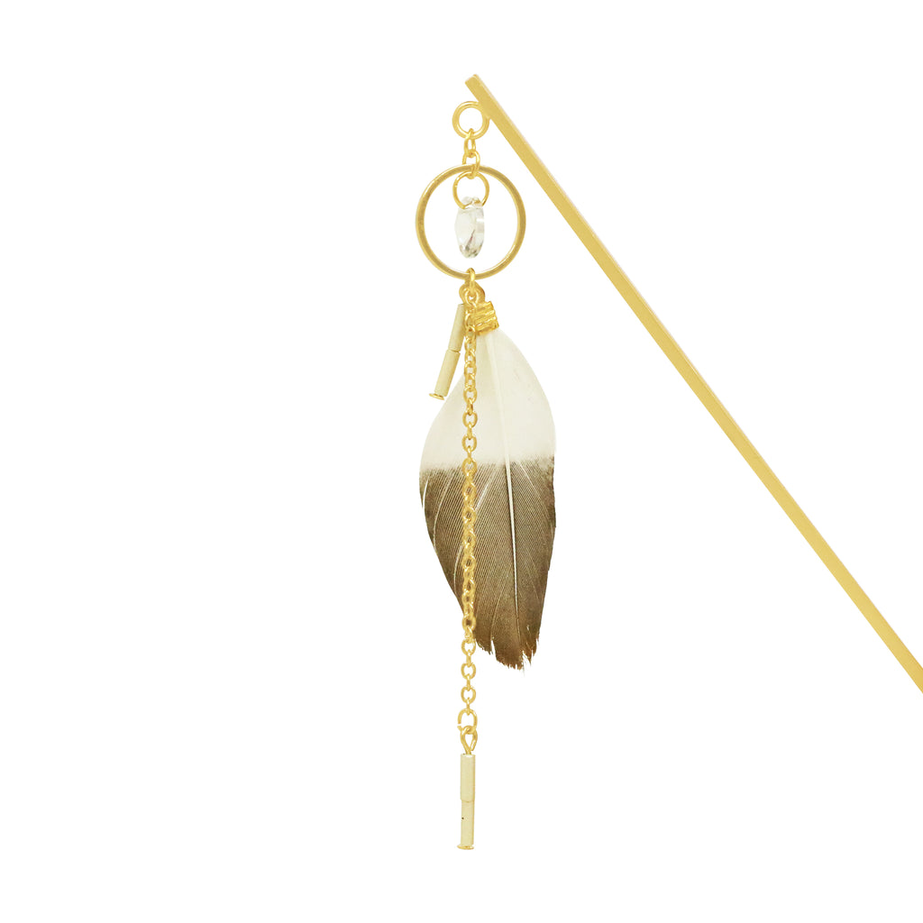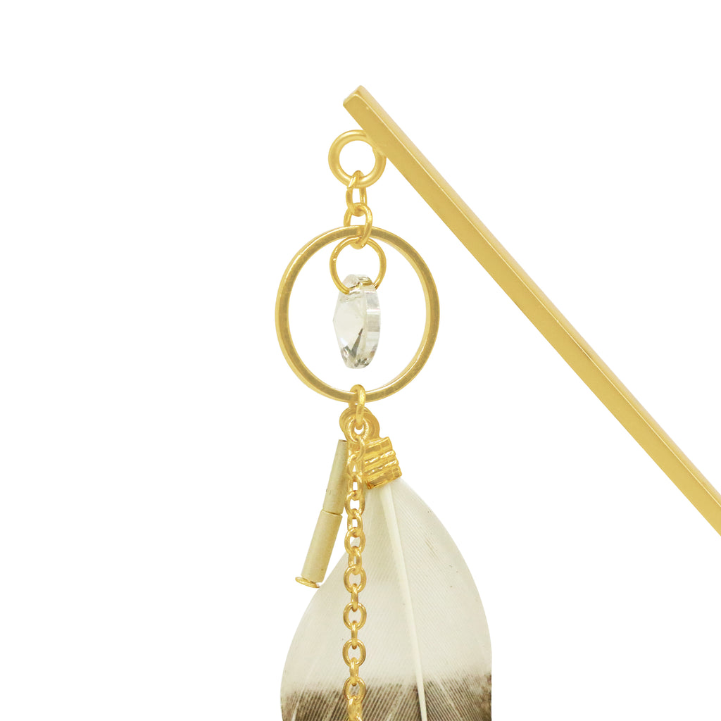 羽パーツを使用し、動きが出るよう長めのチェーンを組み合わせたデザインに仕上げました。