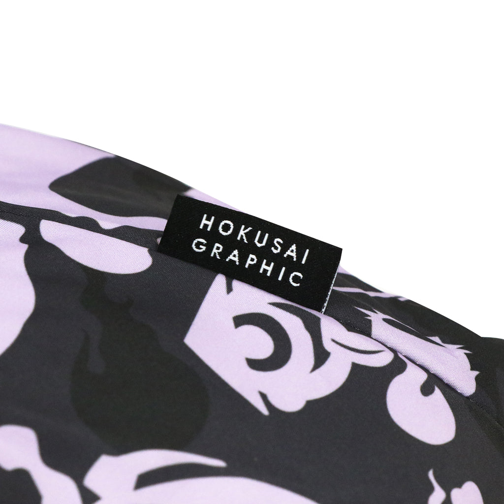 機能美と北斎グラフィックの大胆でモダンな和柄のグラフィックデザインを併せ持つ吾妻袋(あずま袋)の登場です。江戸時代から受け継がれる物を包む、運ぶという日本伝統の文化「風呂敷」と西洋の文化「カバン」の特長を併せ持つ吾妻袋。普段は畳んでカバンの中でしまっておき、小物入れやエコバッグとして、いざという時のサブバッグとしてお使い頂けます。カゴバッグに入れてお使い頂ければ夏の浴衣用バッグに。使い方、アレンジはアイディア次第です。ご自身でお使い頂くのはもちろん、大切な人への贈り物にもおすすめです。折畳み傘、財布にスマートフォン、コンパクトにハンカチなどお出かけに必要な物に加え、ペットボトルくらいならば余裕で入る大容量サイズ。傘布と同じ素材の布を用いているので、嬉しい撥水機能付き。横から吹き付ける雨から大切なお荷物を守ってくれます。また、ちょうど折畳傘が入る大きさなので、プレゼントをワンランク上のものにみせるためのラッピング用バックとしてもお使い頂けます。