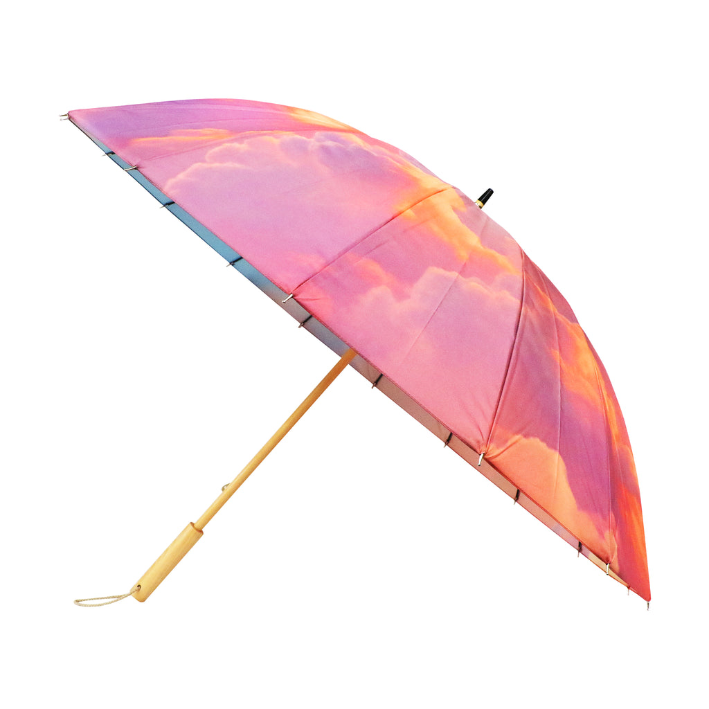 鮮やかな夕焼け色の空に大きく広がる雲を描いた16本骨傘です。