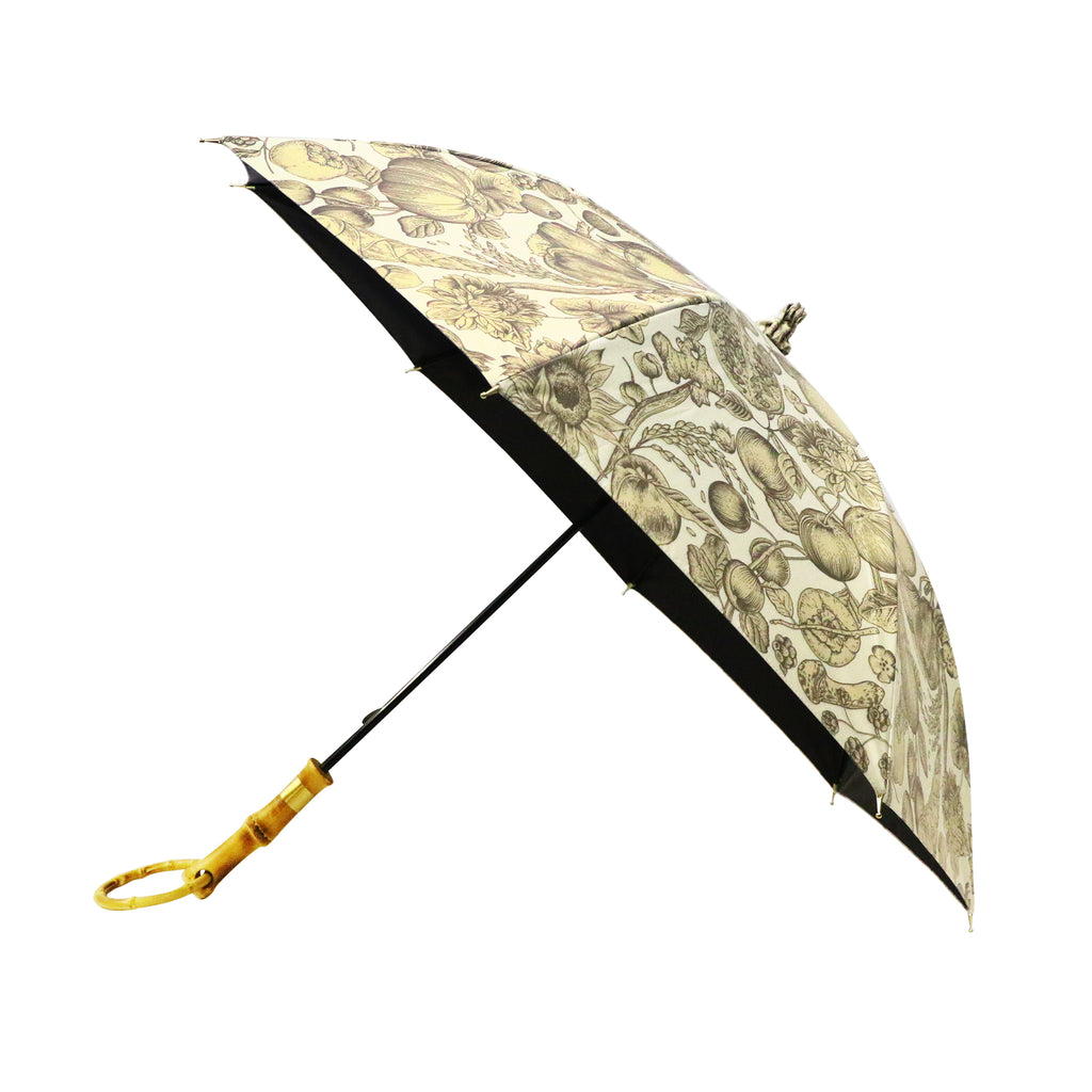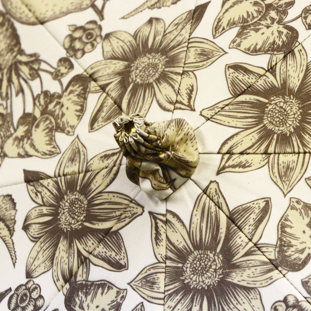 繊細なタッチの植物柄を遮光日傘の全面に落とし込みました。よく見ると日本に馴染みのある植物が混ざっているおしゃれユニークな遮光日傘です。