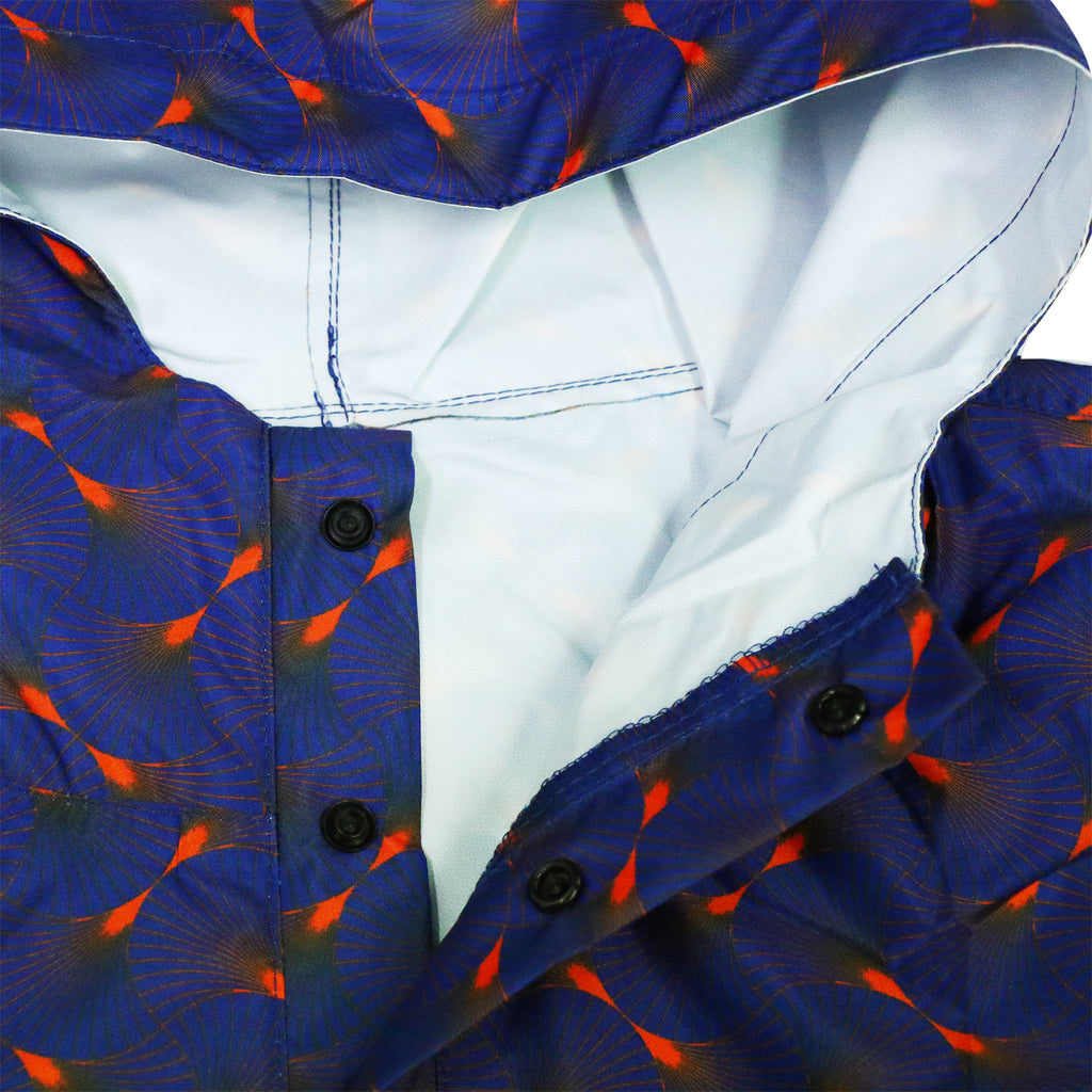 模様を北斎グラフィックらしいカラーリングに洗練されたラインで描かれた扇形を落とし込んだ男女兼用のポンチョタイプの雨合羽が登場!