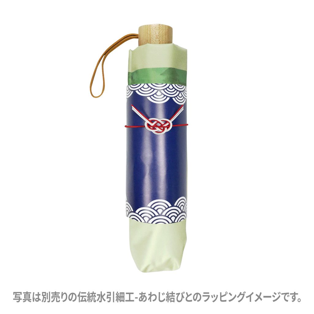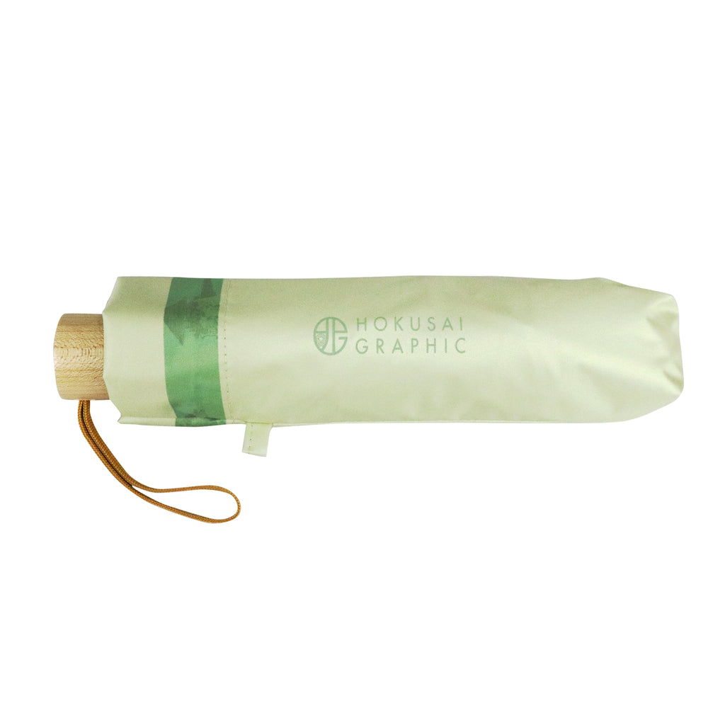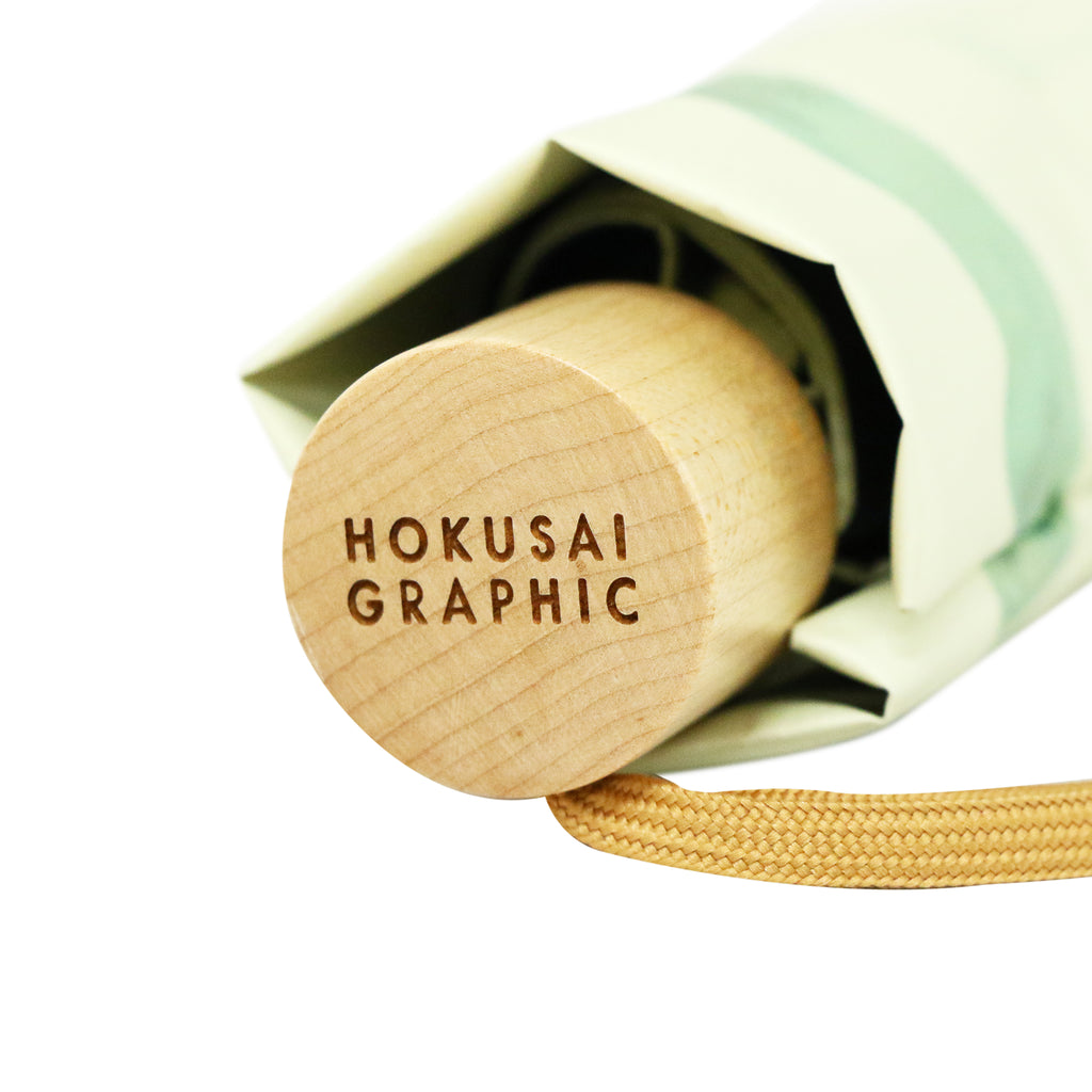 より持ち歩きやすいよう北斎グラフィックの通常の遮光日傘に比べ90g軽い仕様です。骨組みには軽くてしなやかにしなるグラスファイバーを用い、丈夫で雨風にも強い傘となっています。雨傘としても日傘としてもお使いいただけるよう持ち歩く工夫が随所に施された、デザイン性と使いやすさと備えた折りたたみ傘です。