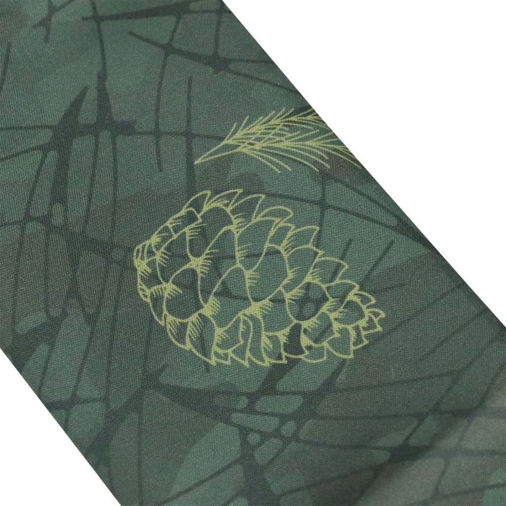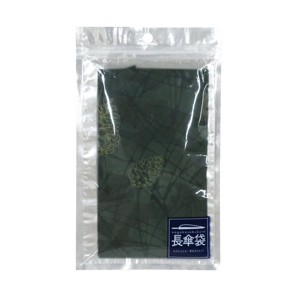 深い緑の地に、そっと寄り添うように添えられた金の松ぼっくりのワンポイントがアクセントになっています。