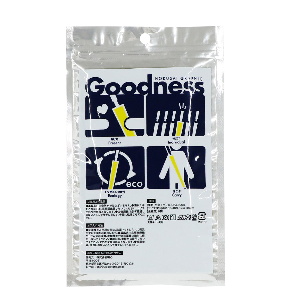 すっきりとした細身のシルエットにストラップが付いており、肩から掛けて持ち運びが可能です。傘の生地と同様のポリエステル素材を使用。濡れた傘もしっかりとカバーします。傘についた水滴は先端の穴を伝って流れ出るため、カバー自体雨水で重くなることを防いでくれます。また、誰のものかわかりにくくなりがちな傘立てでの目印にも最適です。デザイン性と使いやすさを備えた長傘袋です。ご自身用はもちろん、長傘と組み合わせて大切な方へのプレゼントにもおすすめです。