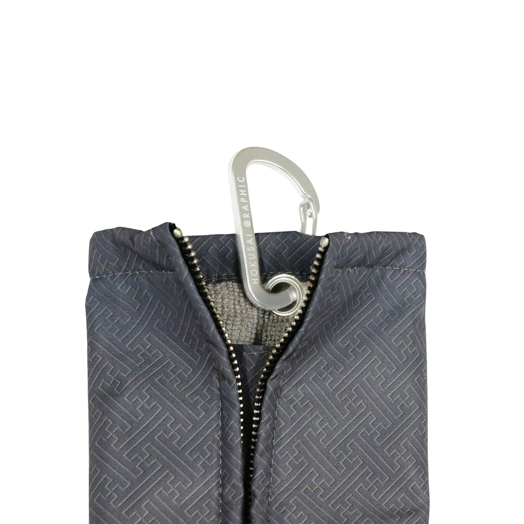 オリジナルテキスタイルを使用した折畳傘用の収納ポーチです。北斎グラフィックの折畳傘しっかり入る設計です。内側にはマイクロファイバー製パイル生地を使用しているので、濡れた傘等の水分を瞬時に吸い取ってくれます。外側は防水・撥水加工を施した生地を使用しています。カラビナにはオリジナルロゴを刻印しています。