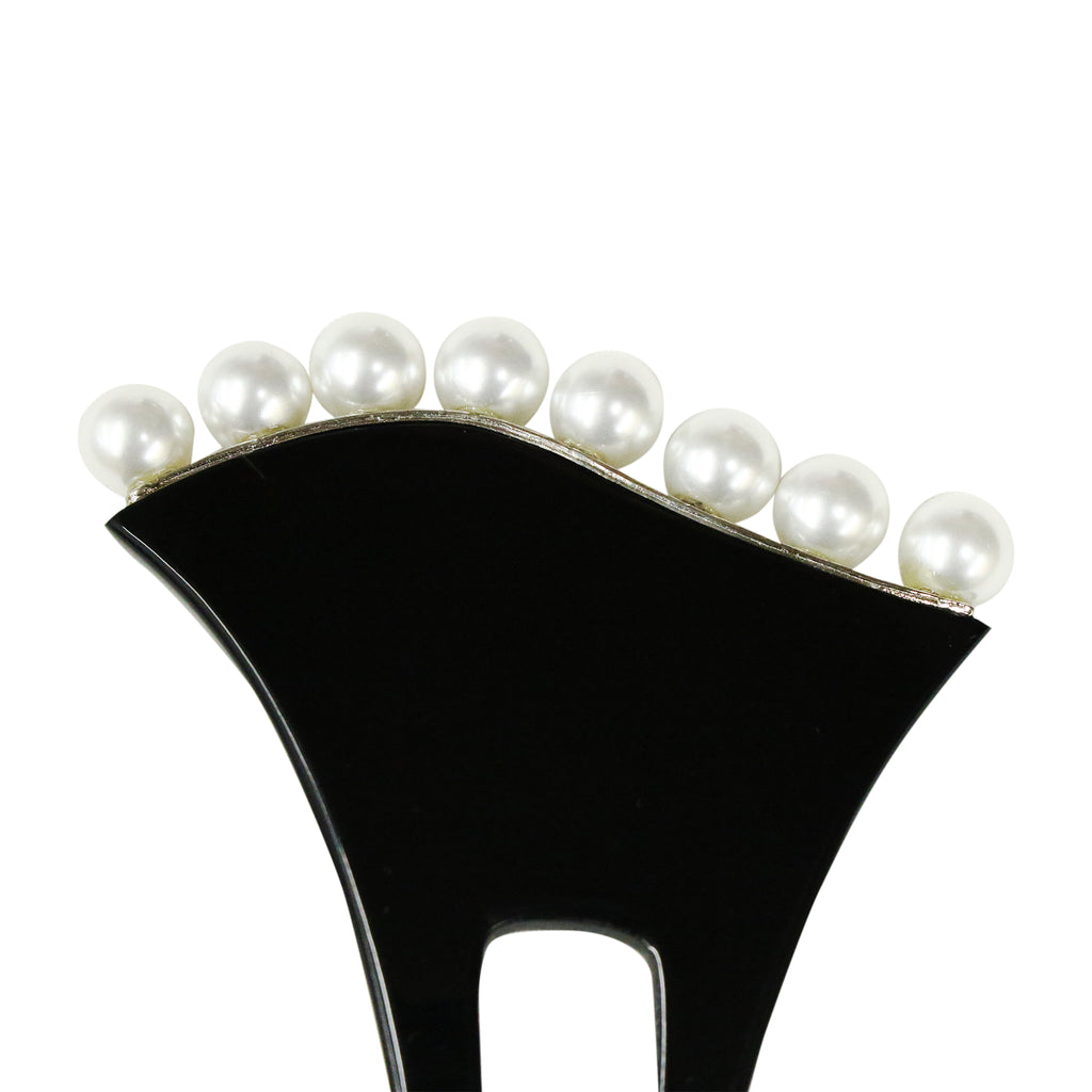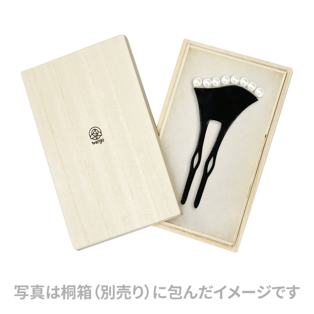 漆黒に浮かぶパールの波。凛とした品格を纏う、大人のバチ型簪です。