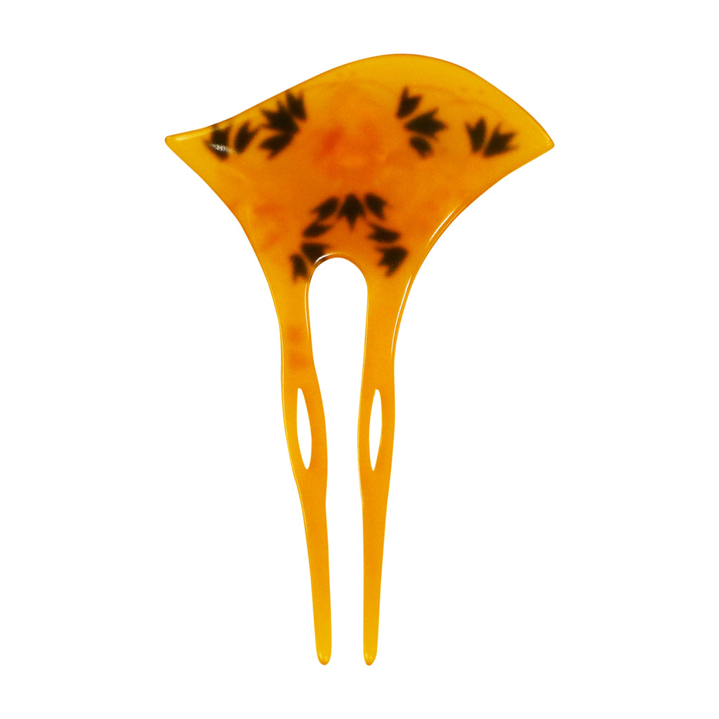 透き通る飴色の艶めき。螺鈿(らでん)のラインがモダンに瞬く、べっ甲調のかんざし。