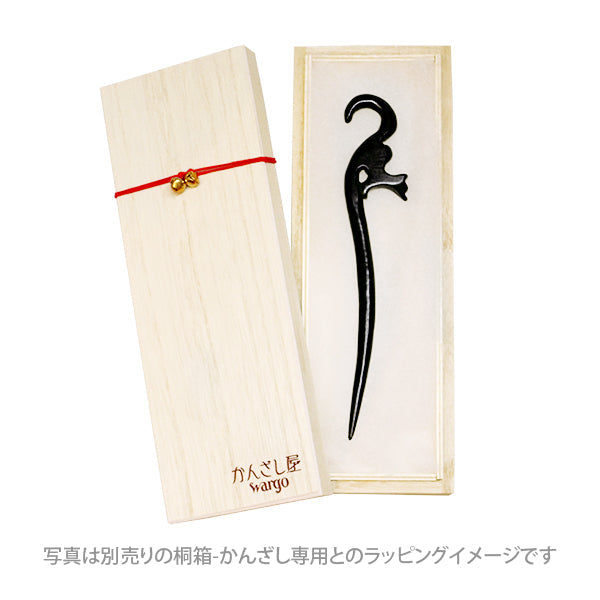 狐が狩りをするために駆け出そうとするその'瞬間'を簪にしました。愛らしく輝いている一瞬の姿を永くお使い頂ける材質で作っており、木材という材質と生き物のデザインを掛け合わせ、自然な調和を持たせたのも特徴です。木は使い込むほどに味が出るので、ずっとお使い頂けるようにシルエットのデザインでシンプルに仕上げました。想像力をかき立てる写絵のような丸みのあるデザインは、よりいっそう愛着をもって頂けるようにと思いを込めました。自然の木の色で作られた雰囲気は、シックで暖かみがあり、和装はもちろんカジュアルな洋服にも合わせやすく、アクセントになります。ぜひお好みのデザインを見つけてください。