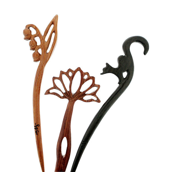 | 軸の特徴 | 木の摩擦がストッパーの役目を果たしてくれるので、髪質が柔らかく、真鍮では留めにくい方にもおすすめです。強く力をかけると折れる可能性もありますので、ご注意ください。天然素材のため、やや個体差もみられます。 |
