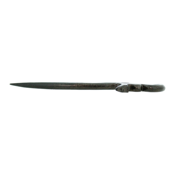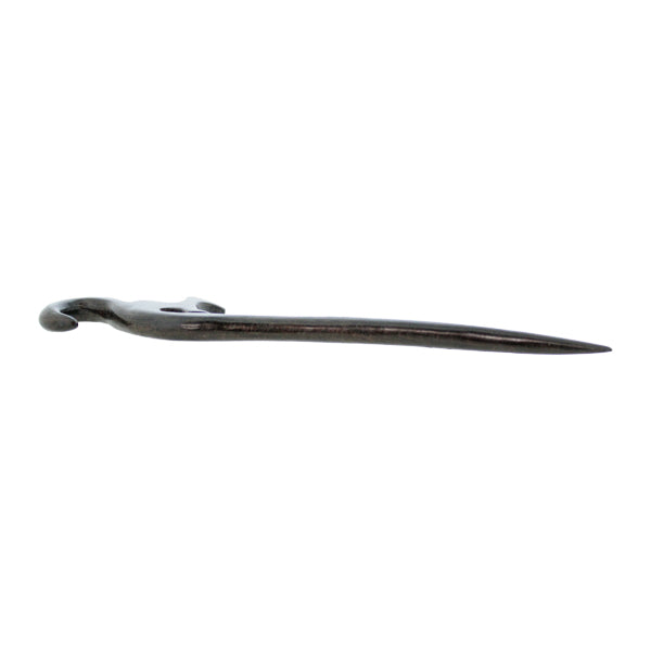 木製のしっとりとした雰囲気は大人っぽい印象ながら、シンプルなのでカジュアルにもお使い頂ける一本です。特徴として、深みのある色合いで緻密かつ重厚そして堅固な材質。丁寧に仕上げたその手触りは滑らかで、上品な光沢感があります。使い込めば独特の風合いが生まれ、あなただけの一本としていつまでも永くお使いいただけます。手彫りならではの質感と、重厚な深みのある光沢感をお楽しみください。木は滑りにくいので、髪の多い方でも1本で簡単にまとめられるので初心者の方にもおすすめです。シンプルに象ったデザインは、他の簪との相性も良く、重ね付けにも最適です。